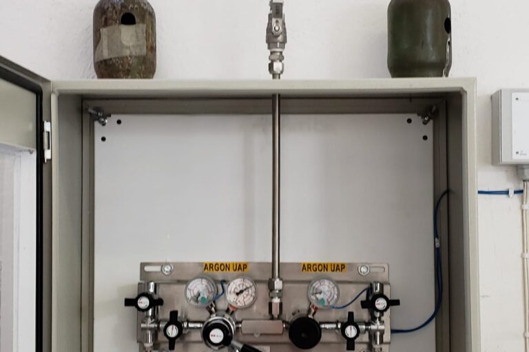 Red tubería inoxidable con manifold switch over para suministro de gases UHP para laboratorio